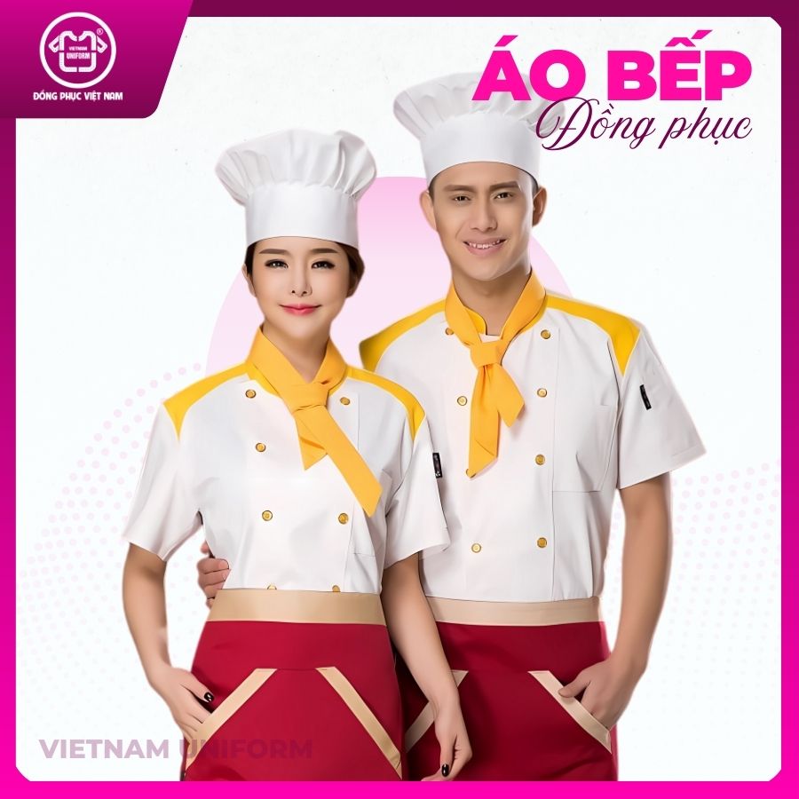 Đánh giá Áo bếp – Trắng phối đỏ vàng cầu kì