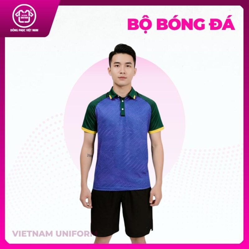 Bộ bóng đá màu xanh dương phối đen, vàng