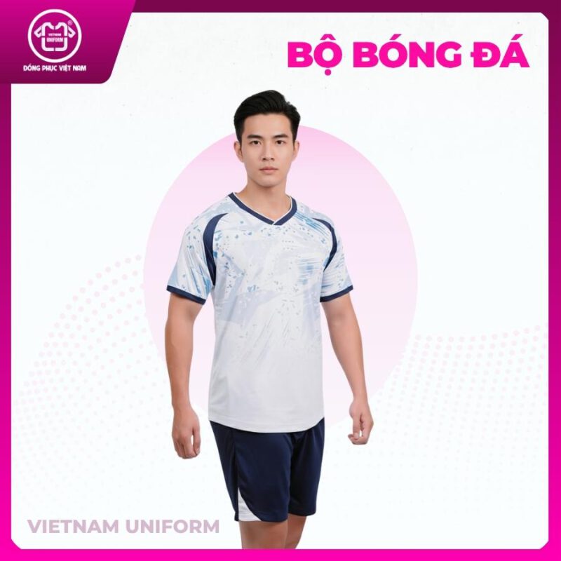 Bộ bóng đá trắng phối xanh navy
