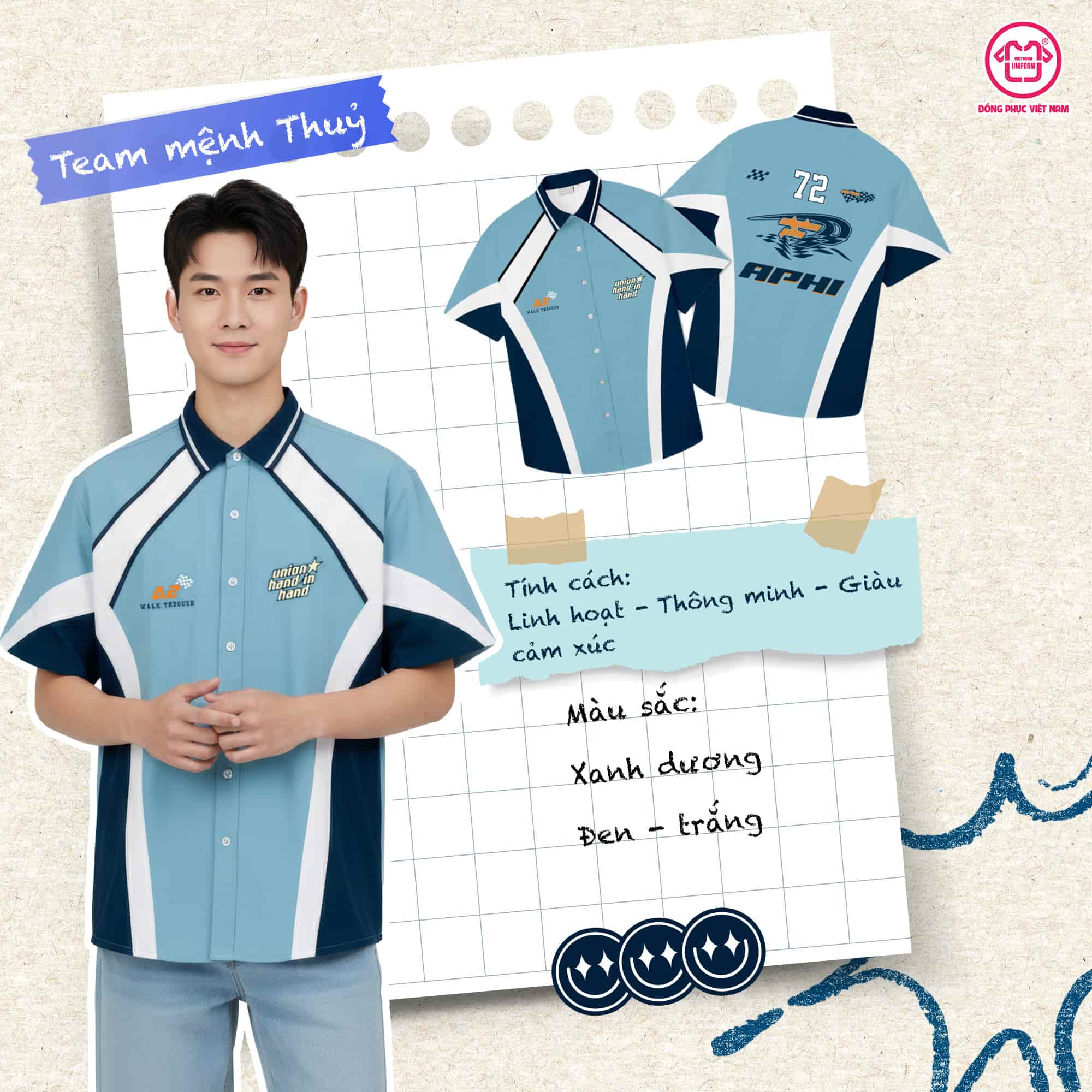 Gợi ý thiết kế: Đồng phục áo lớp đen hoặc xanh navy là lựa chọn cổ điển, dễ mặc và cực kỳ hợp với mệnh Thủy, toát lên vẻ chuyên nghiệp và linh hoạt.