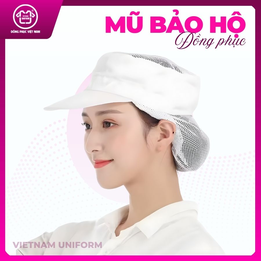 Mũ bảo hộ màu trắng ( Lưỡi trai có lưới trùm tóc)